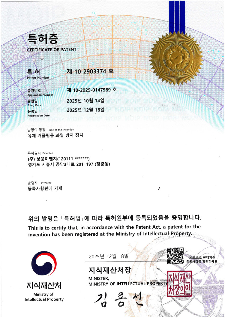 지적재산권 | 특허증(10-2903374)_유체 커플링용 과열 방지 장치
